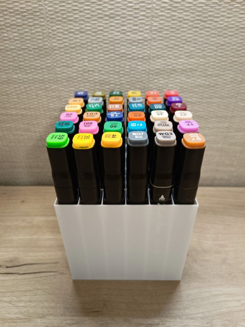 Погрузитесь в мир порядка с нашим стильным органайзером для маркеров! С ним ваши яркие инструменты творчества всегда будут на своем месте и прослужат долго.